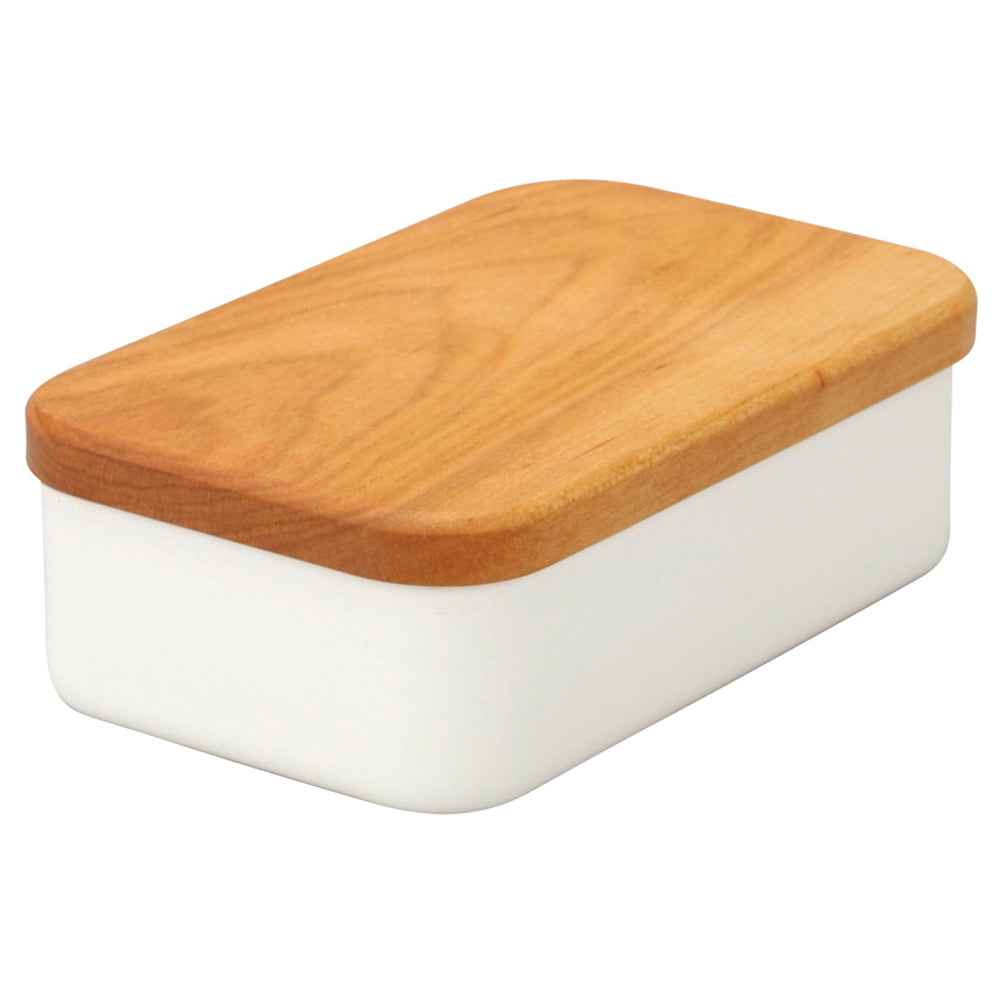においうつりがなく、冷却性の高いホウロウと、天然木(サクラ)蓋というバターケースに最適な組み合わせが実現