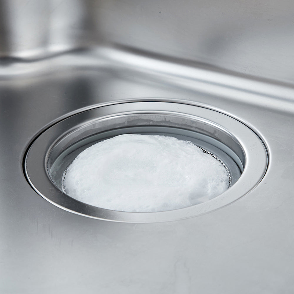 排水口に振りかけて、40℃程度のぬるま湯をコップ1杯。ぶくぶくと泡立ったら約1時間放置し、その後水で洗い流すだけ。
